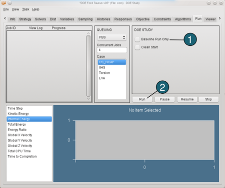 Make sure, that you specify an appropriate queuing system in the Run panel. - For the first load case enter a name for Name of Analysis Case, e.g. US_NCAP.