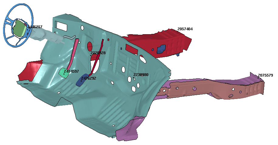 This information may be used to reduce the set of variables for each load case and e.g. perform an optimization afterwards. Here, 8 most important variables are selected for each load case. The colors in the table below visualize the common variables of the load cases. Obviously the variable firewal is important for all four load cases.